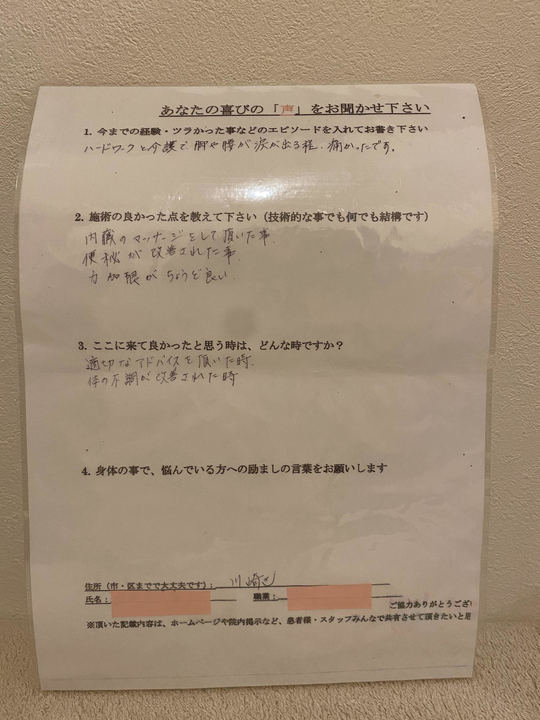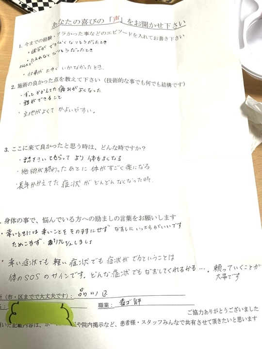今の状態は根気よくセルフケアもして頂いた結果です。